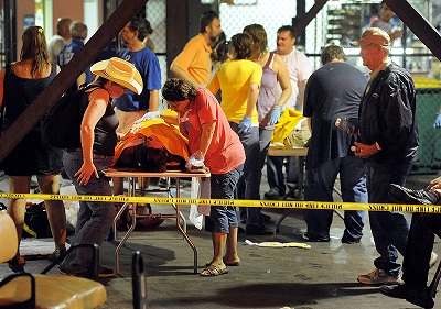 El escenario principal cayó la noche del sábado sobre la multitud que esperaba la presentación del grupo musical Sugarland, tras el paso de una tormenta con fuertes vientos y lluvia.
